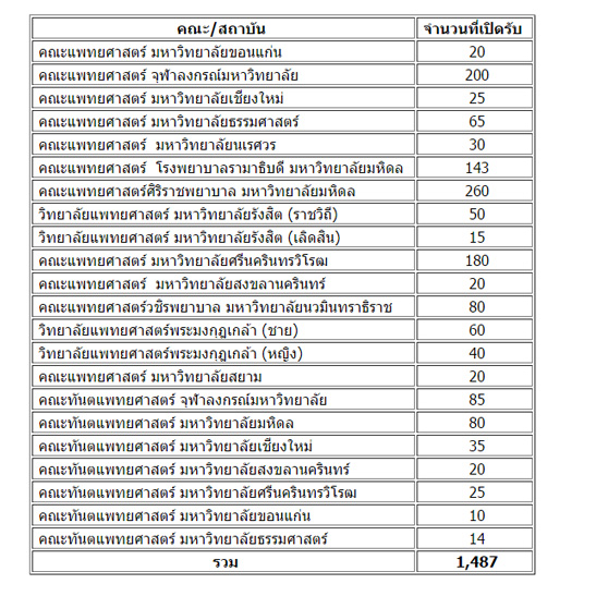 จำนวนที่รับ คณะ/วิทยาลัยแพทยศาสตร์ และคณะทันตแพทยศาสตร์ ตามประกาศรับตรง กสพท 58