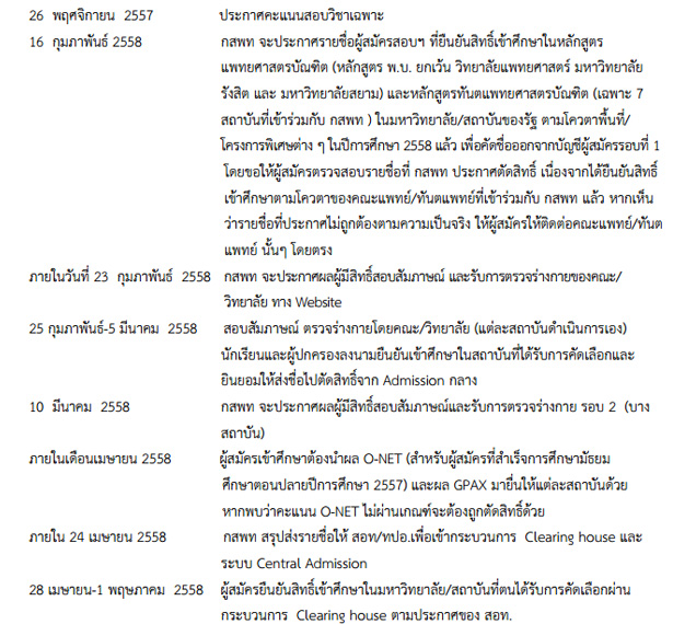 การกำหนดการคัดเลือกผู้เข้าศึกษาหลักสูตรแพทยศาสตรบัณฑิต กสพท 58