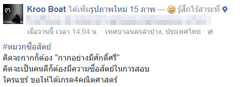 เมื่อวันที่ 26 กุมภาพันธ์ 2559 ในโลกโซเชียลเน็ตเวิร์ก ต่างมีการแชร์ภาพการสอบในโรงเรียนแห่งหนึ่งที่ จ.ลำปาง ซึ่งคุณครูผู้สอนได้ให้นักเรียนในห้องสอบ สวมหมวกกระดาษที่บังหน้านักเรียน ไม่ให้สามารถมองข้อสอบคนข้าง ๆ ได้ ซึ่งคุณครูตั้งชื่อหมวกใบนี้ว่า "หมวกซื่อสัตย์"