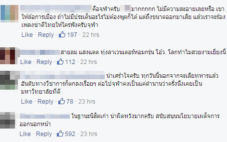 ในขณะที่ชาวเน็ตอีกฝ่ายหนึ่งคิดต่าง โดยกล่าวว่า การแปรอักษรชุดนี้เหมาะสมและดีงามแล้ว เพราะเป็นการสร้างเสริมความสามัคคี ไม่ทำให้คนไทยแตกแยกมากไปกว่านี้อีก