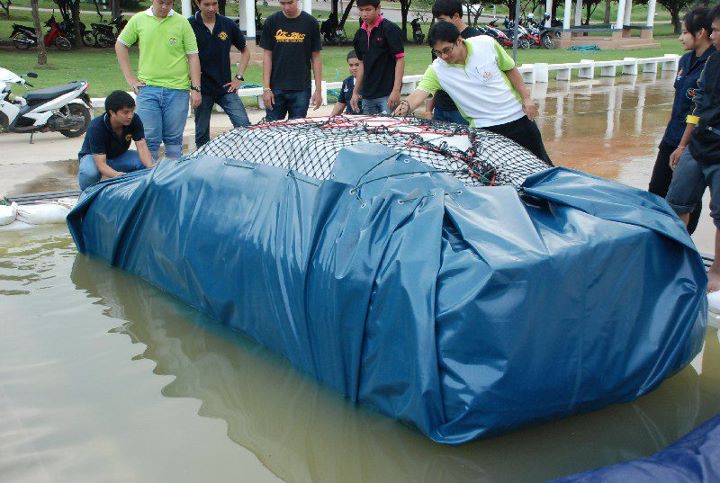 ตามที่เกิดอุทกภัยครั้งใหญ่ของประเทศไทย หลายพื้นที่ต้องประสบกับน้ำท่วมสูงมิดหลังคารถยนต์ ทำให้ต้องจ่ายเงินค่าซ่อมรถยนต์ 10,000-100,000 บาท หลังน้ำลด การห่อรถลอยน้ำ จึงเป็นทางเลือกที่ดี ทั้งไม่มีปัญหาต้องซ่อมรถหลังน้ำท่วม และไม่ต้องวุ่นวายหาที่จอดรถในที่สูงเพื่อหนีน้ำ โดยอาจารย์และนักศึกษาจากมหาวิทยาลัยเทคโนโลยีสุรนารี ได้คิดค้นหาวิธี และทดสอบจนมั่นใจ ห่อรถยนต์ลอยน้ำหนีน้ำท่วมได้จริง