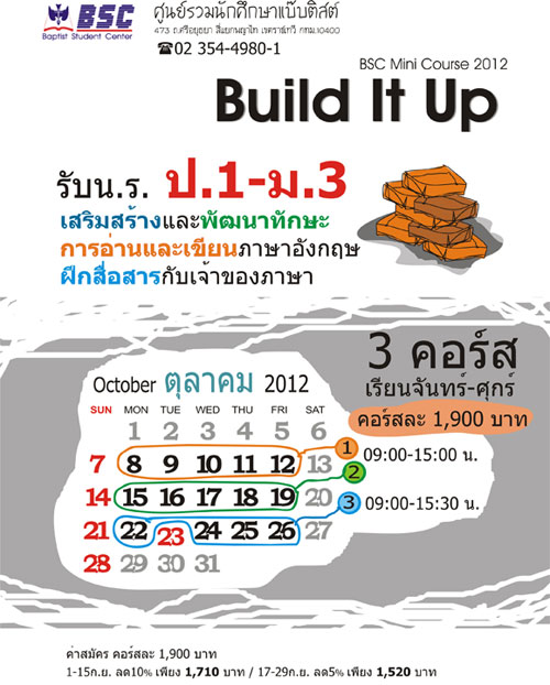 สอบถามรายละเอียดเพิ่มเติม ได้ที่ โทร 02-354-4980-1 / 02-354-354-4984-5 และ http://www.bscbaptist.com/