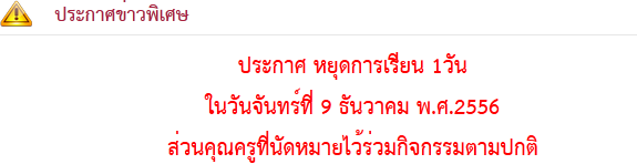 สรุปรายชื่อโรงเรียนที่ประกาศงดการเรียนการสอน วันที่ 9 ธันวาคม 2556